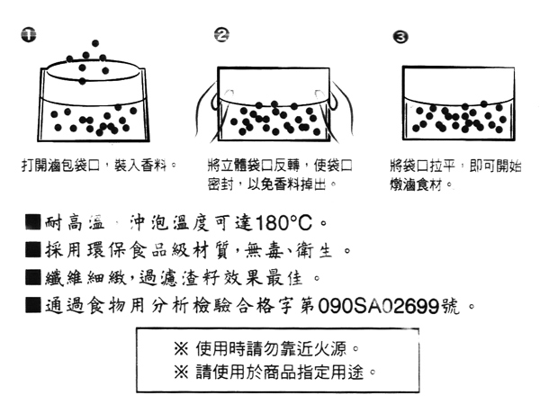 台灣製造,通過食物用分析檢驗合格安心飲用,立體空間,好沖、好泡、好入味,使用完直接丟棄,纖維細緻,過濾(茶渣、食物渣、咖啡渣、中藥渣)效果佳,方便、衛生。