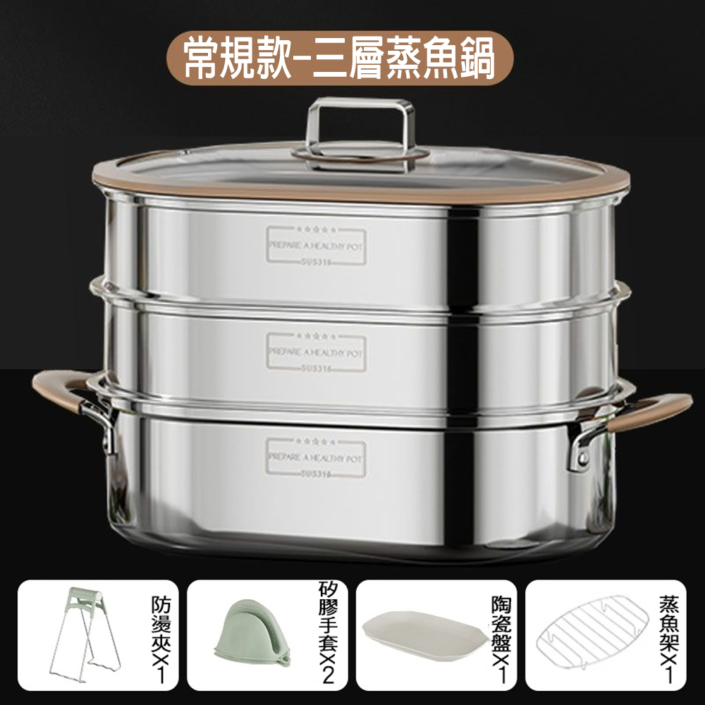 單層/雙層/三層316不鏽鋼蒸魚鍋清蒸鍋