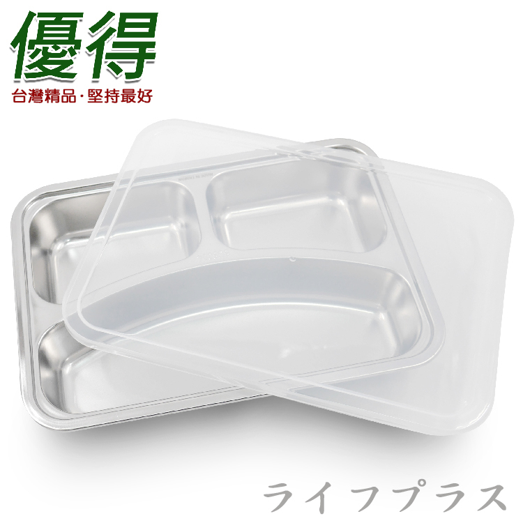 優得304不鏽鋼完美餐盤-3格-附蓋-1組