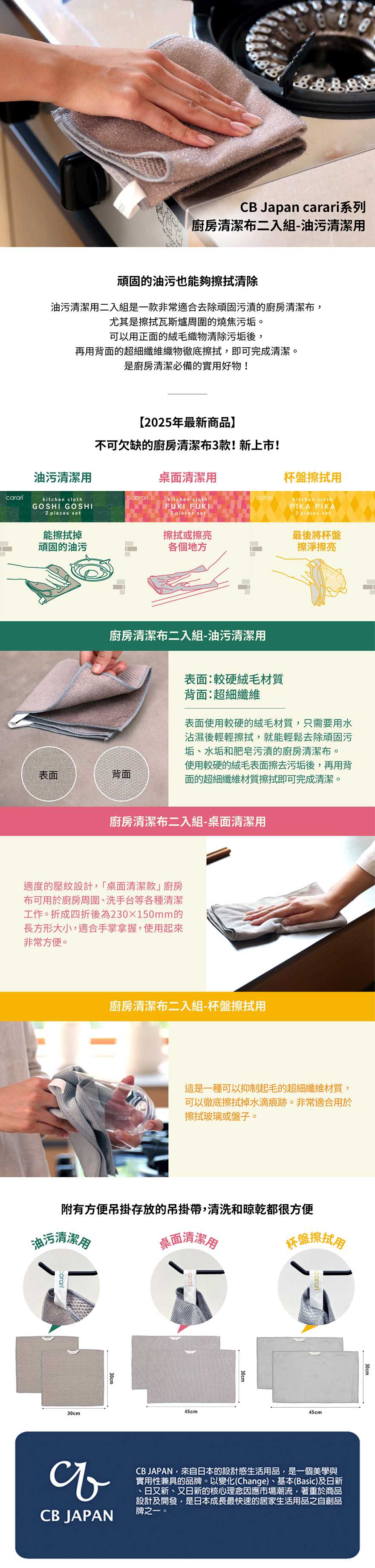 【CB JAPAN】carari系列 廚房清潔布二入組-油污清潔用