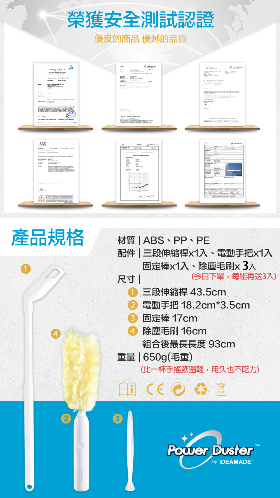 【洛克馬企業】360度電動除塵神器 1支除塵棒 附贈3個除塵布套