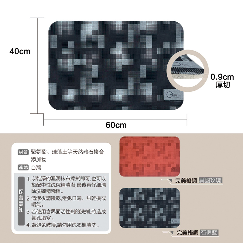 【怪獸】OGL 10秒頂吸 厚切特舒軟式珪藻土吸水地墊 完美格調 (60x40cm) -石板藍