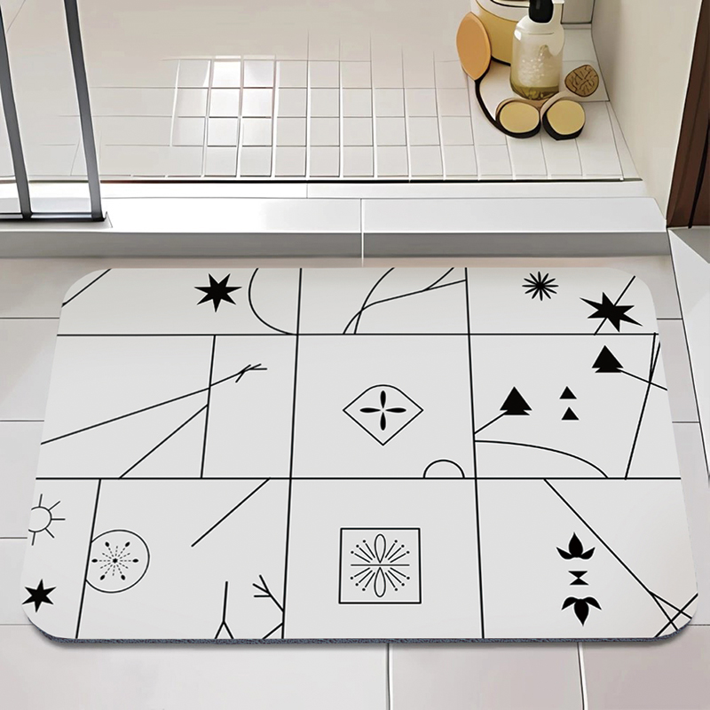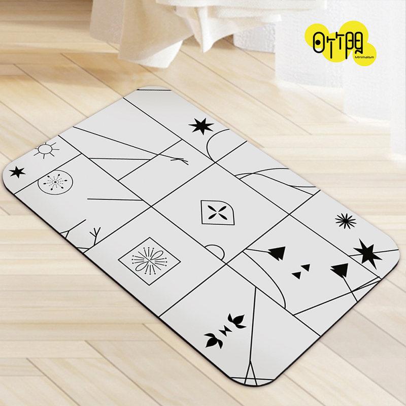 【怪獸】日竹門 10秒頂吸 軟式珪藻土吸水地墊 黑白線(60x40cm)