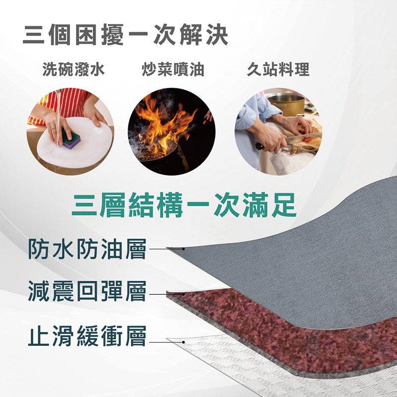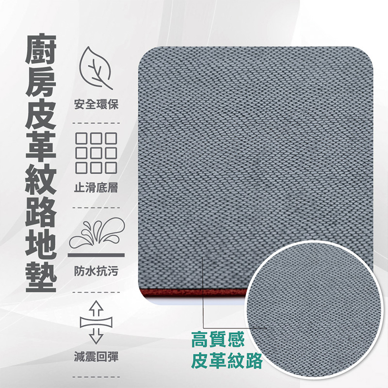 【怪獸】日竹門 高質感 廚房皮革紋路防水地墊 (80X50cm) -灰