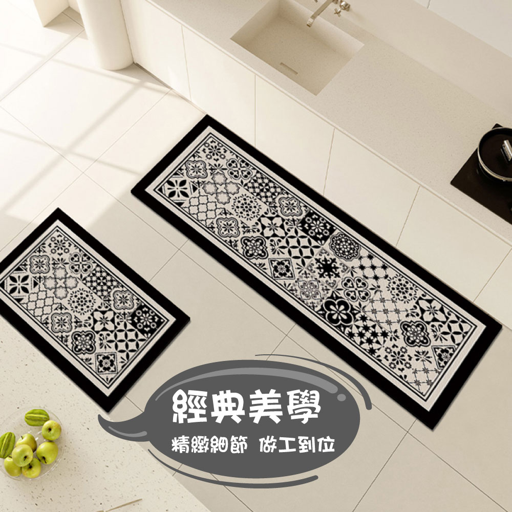 波蘭復古花磚珪藻土軟式地墊【花磚爵士黑-45*120】 珪藻土地墊 速乾 吸水 廚房 軟式地墊 浴室地墊 軟地墊 浴室 矽藻土地墊 柔軟