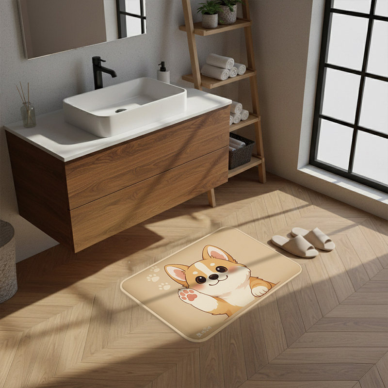 【怪獸】瑪思特 軟式珪藻土吸水地墊 萌犬系列 (60x40cm) - 招手柯基