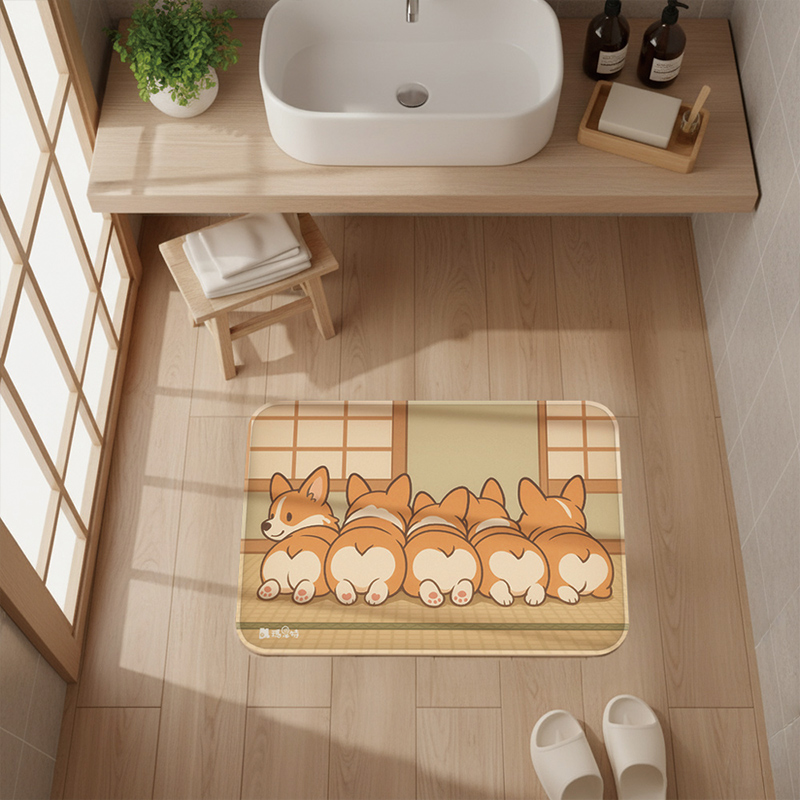 【怪獸】瑪思特 軟式珪藻土吸水地墊 萌犬系列 (60x40cm) - 屁屁柯基