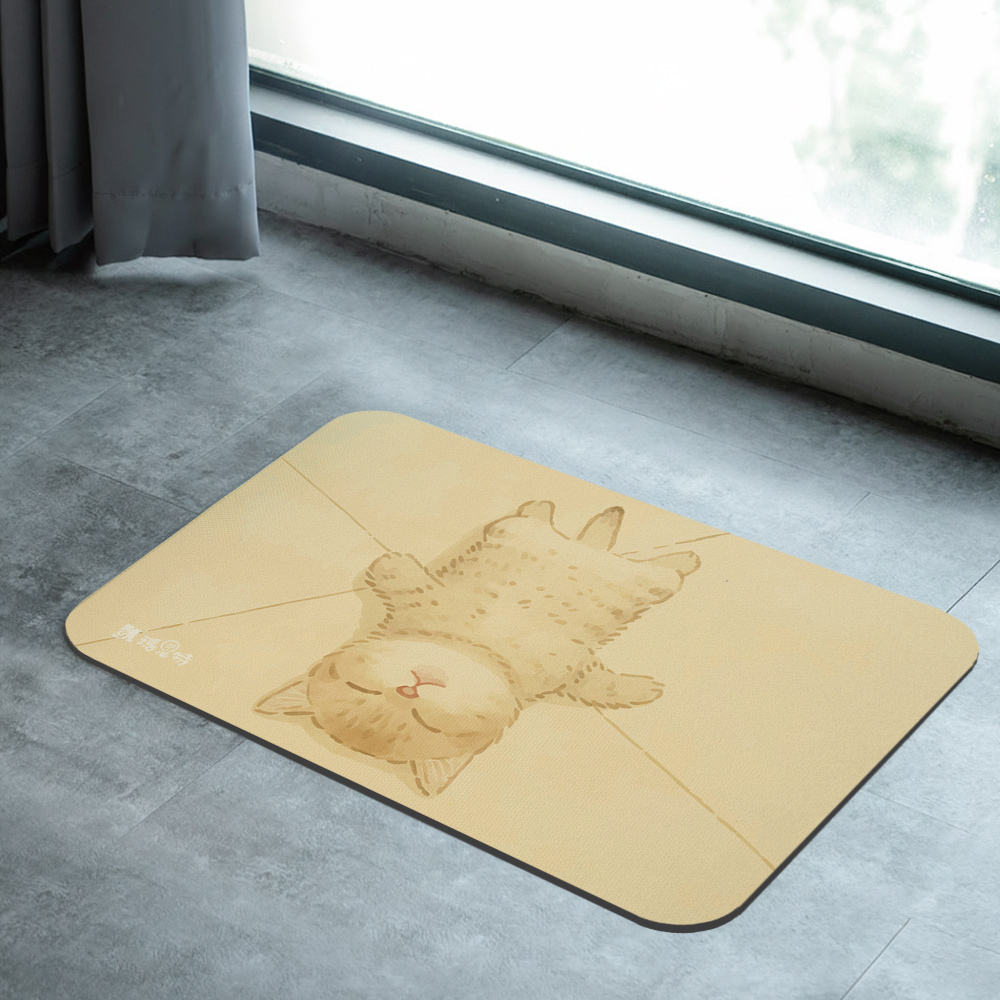 【怪獸】瑪思特 軟式珪藻土吸水地墊 睡癱貓系列 (60x40cm) -躺平貓