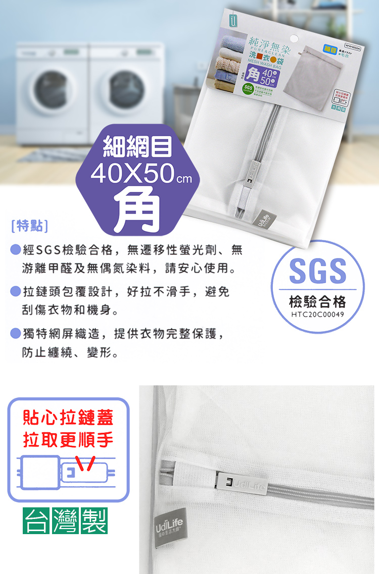 台灣製造品質安心,不易脫線不開口,無染材質通過SGS檢驗合格,使用安全又安心,防止衣物損壞變形保護衣物,防止衣物糾結不傷衣物,分類洗衣輕鬆曬衣服,不用再為了打結衣物而傷腦筋,使用方便,洗衣好幫手。