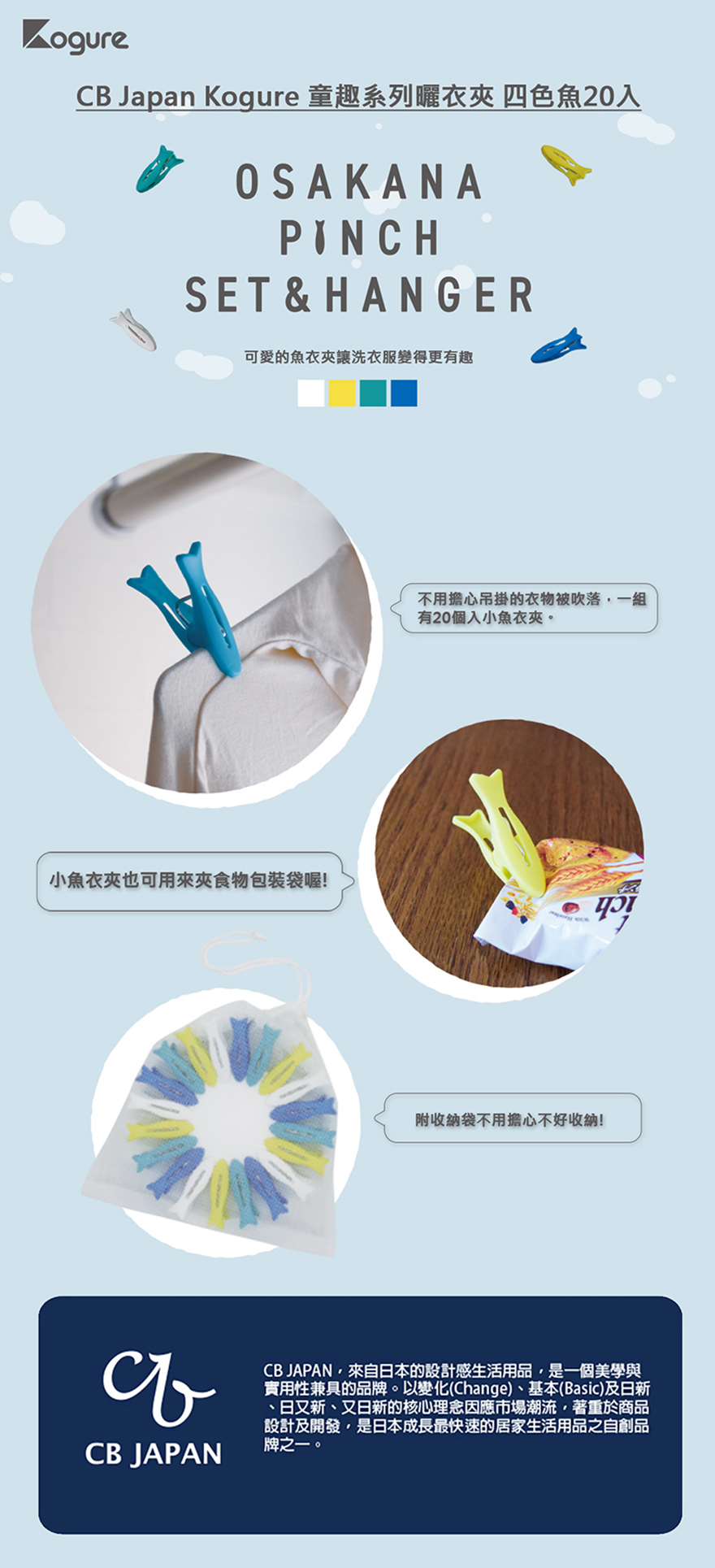 【CB JAPAN】Kogure 童趣系列曬衣夾20入組 四色魚