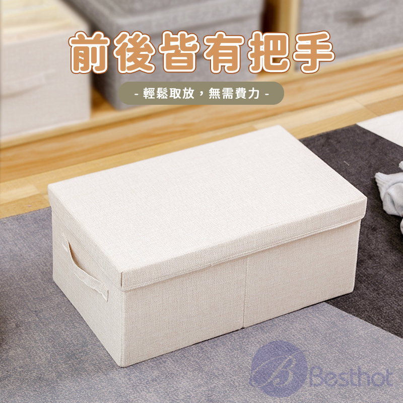 【Besthot】日式棉麻布有蓋可折疊衣物收納箱