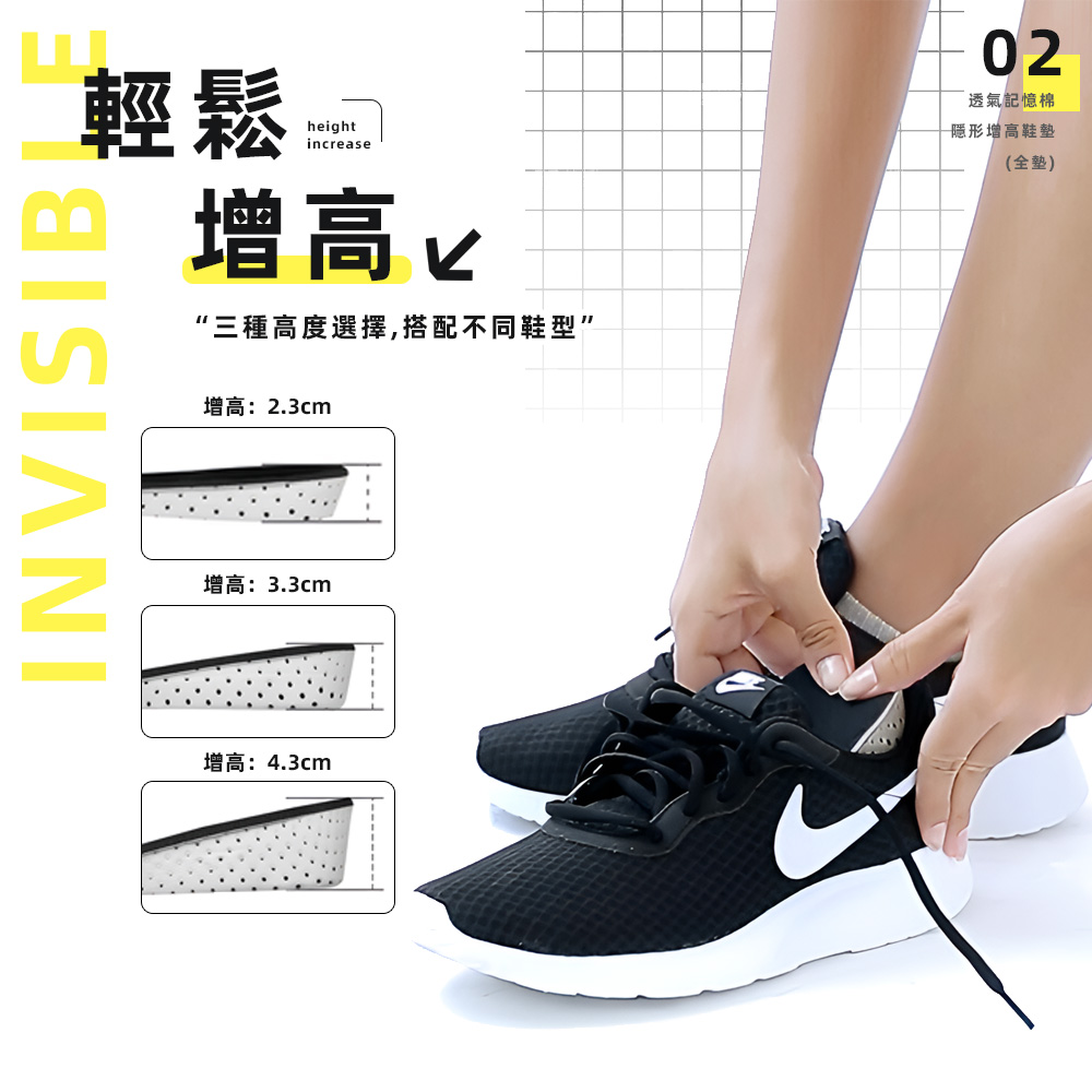 這款記憶棉增高鞋墊,特別適合想微調身高、優化穿搭比例的人,解決了傳統增高鞋墊悶熱不適的困擾。採用Q彈記憶海綿,有效吸收足部壓力,搭配整面的透氣孔洞,久穿依然乾爽舒適。全墊式設計可自由剪裁,完美貼合您的鞋型,讓您每一步都走得更穩、更有自信。