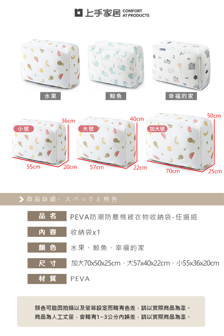 【上手家居】PEVA棉被收納袋 55cm-水果(棉被袋/防水收納袋/透明收納袋/衣物收納袋/被子收納袋)