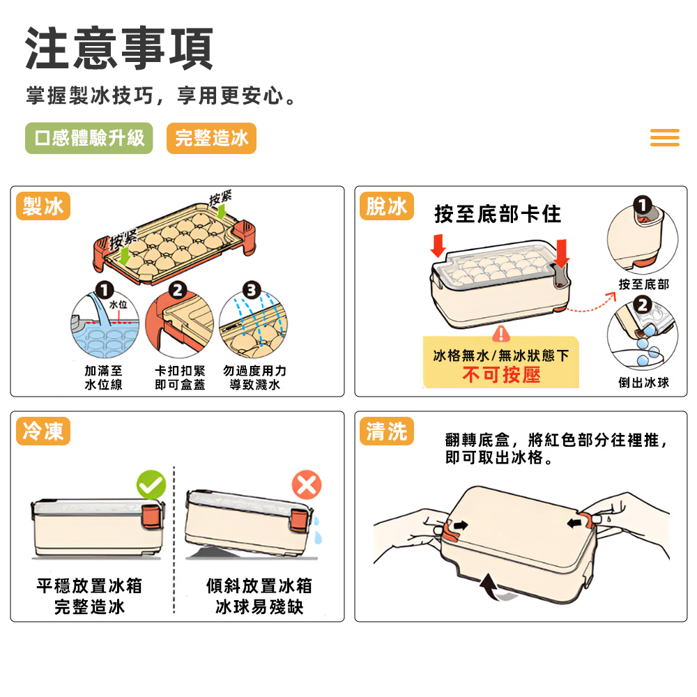 ⚠ 溫馨提醒:網頁圖片因拍攝關係會與實際商品略有色差,顏色請以實際收到商品為準。脫模前,建議可先靜置或以冷水稍微沖洗冰盒底部,脫模會更加順利。