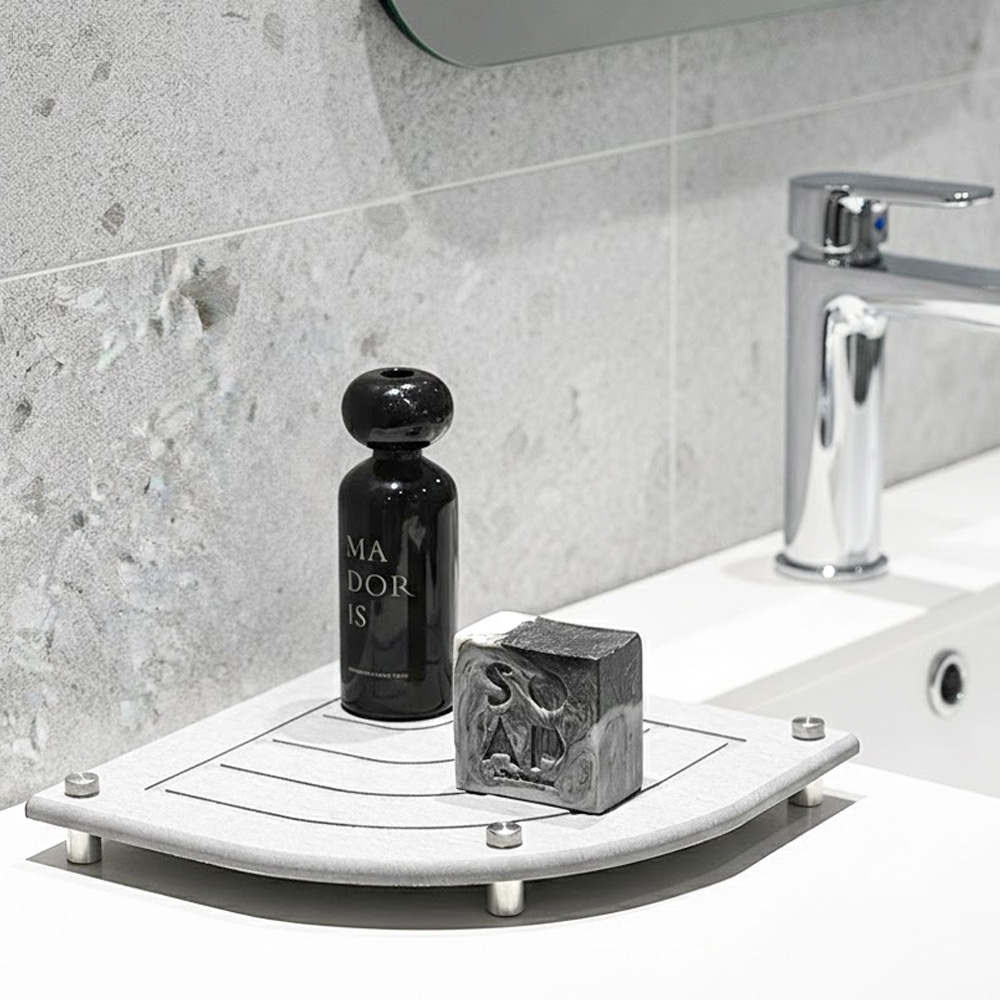 這款圓弧硅藻土吸水轉角墊特別適合小空間的浴室或廚房,解決檯面潮濕、物品雜亂的困擾。珪藻土材質吸水速乾,告別發霉,搭配轉角設計,充分利用角落空間,放置洗手乳、香氛瓶等小物,讓檯面保持乾爽整潔,打造舒適的生活空間。