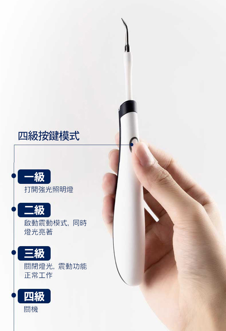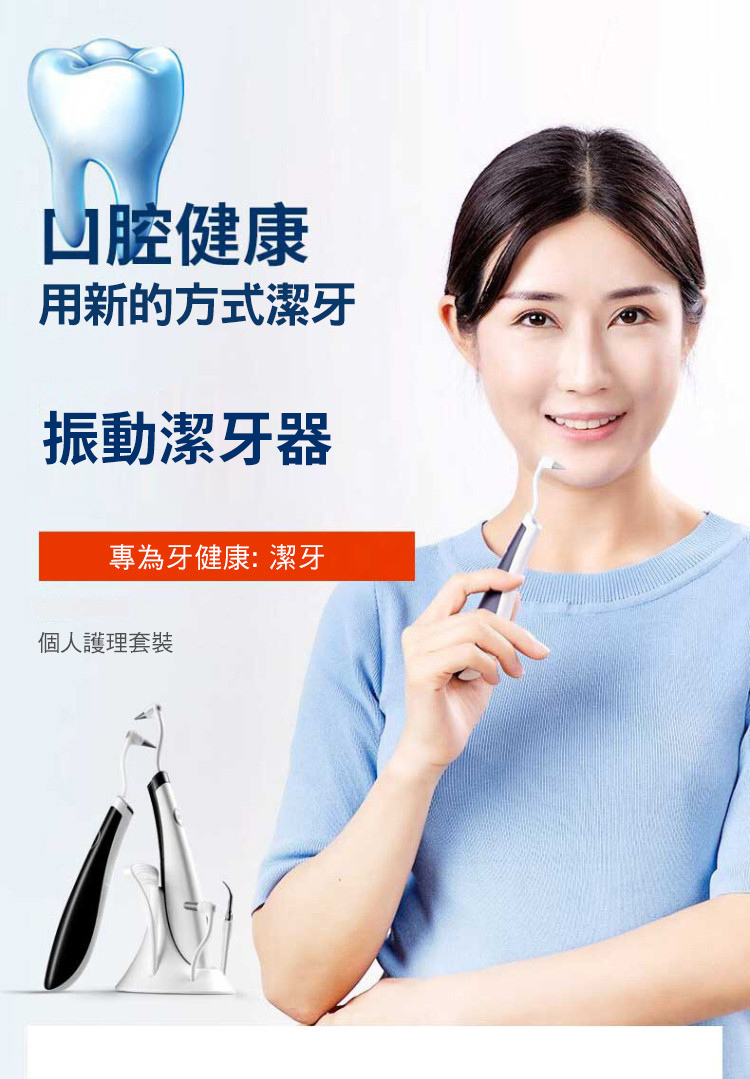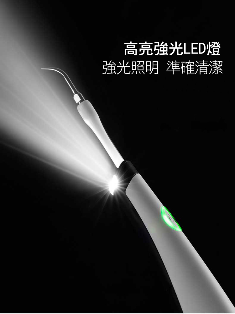 ● 去除牙漬 按摩牙齦 ● 潔齒護齦 強光照明 ● 5種功能頭 滿足多種需求