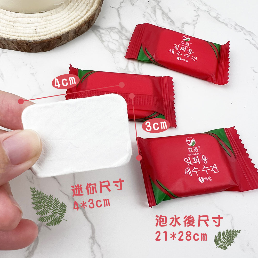 外出攜帶超便利小巧且獨立包裝柔軟AB面 清潔/柔軟天然植物纖維材質 柔軟舒適獨立包裝 方便攜帶外出加大加厚 吸水力強原尺寸:4*3cm碰到水的尺寸:21*28cm