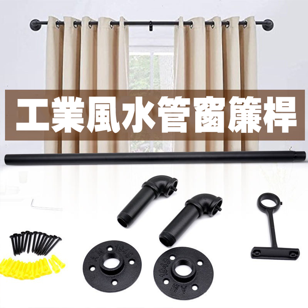 71-426cm北歐復古黑鐵水管窗簾吊桿