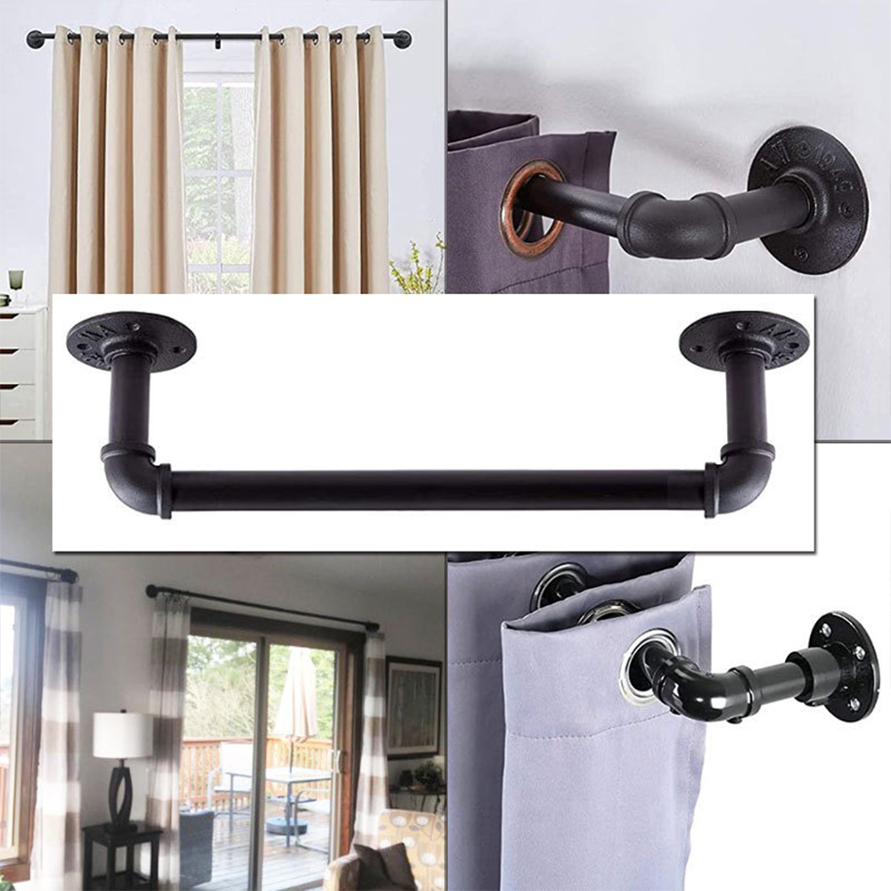黑色工業窗簾桿設計易於安裝,鎖牆結構,安全牢靠