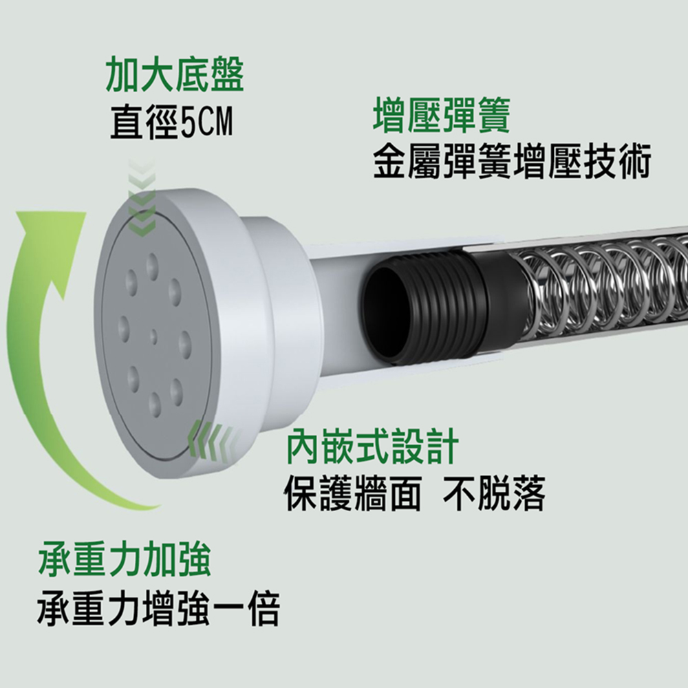 1入 大圓頭不銹鋼帶彈簧螺旋式伸縮浴簾桿 可伸縮110-200cm
