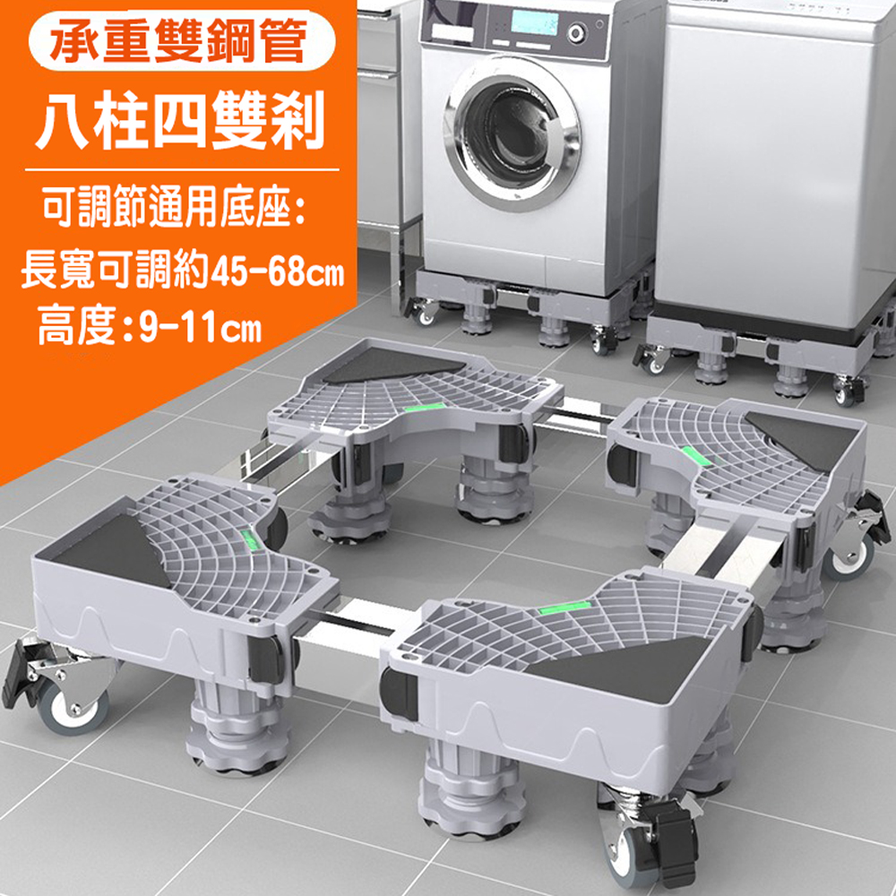 【SV61285】通用型雙管 8腿4雙輪冰箱洗衣機烘乾機 底座 托架 可伸縮萬向輪移動置物支架 直立滾筒通用