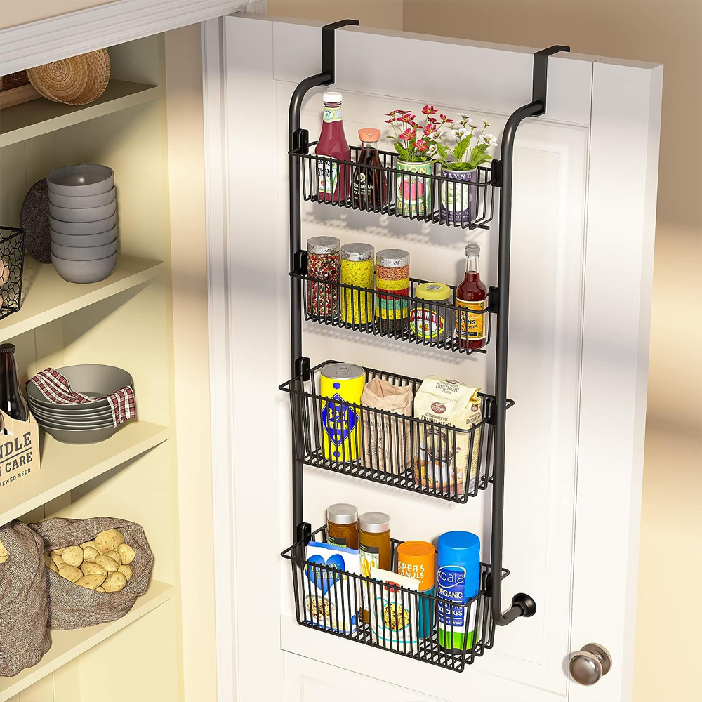 四層、六層門上儲藏室收納架,附籃子,懸掛收納和整理