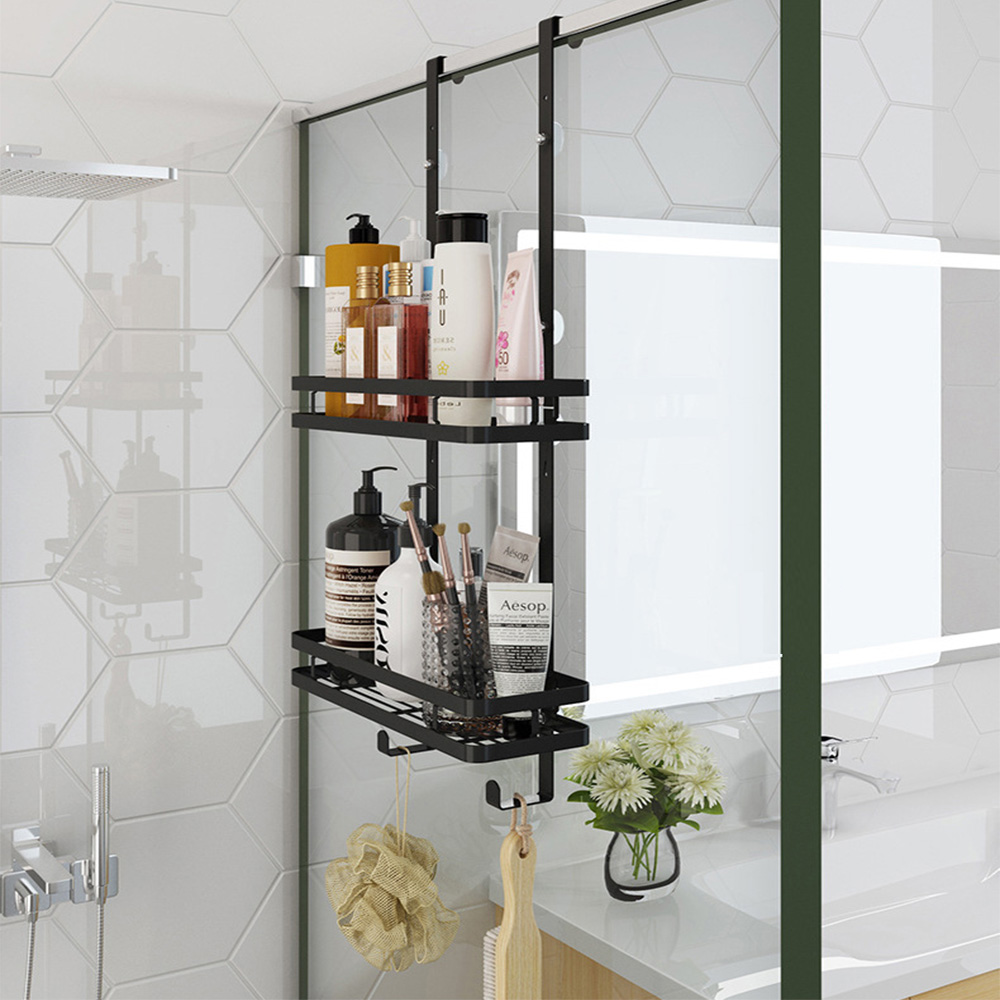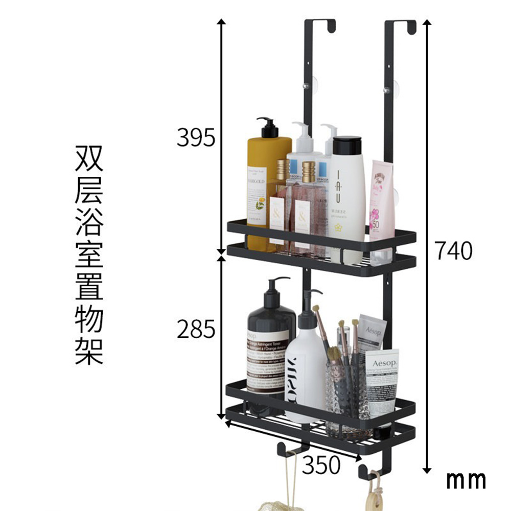 【SV6056】雙層 不銹鋼烤漆多功能浴室置物架 門後掛架 免打孔分層掛籃 廚房置物架 洗浴用品收納架