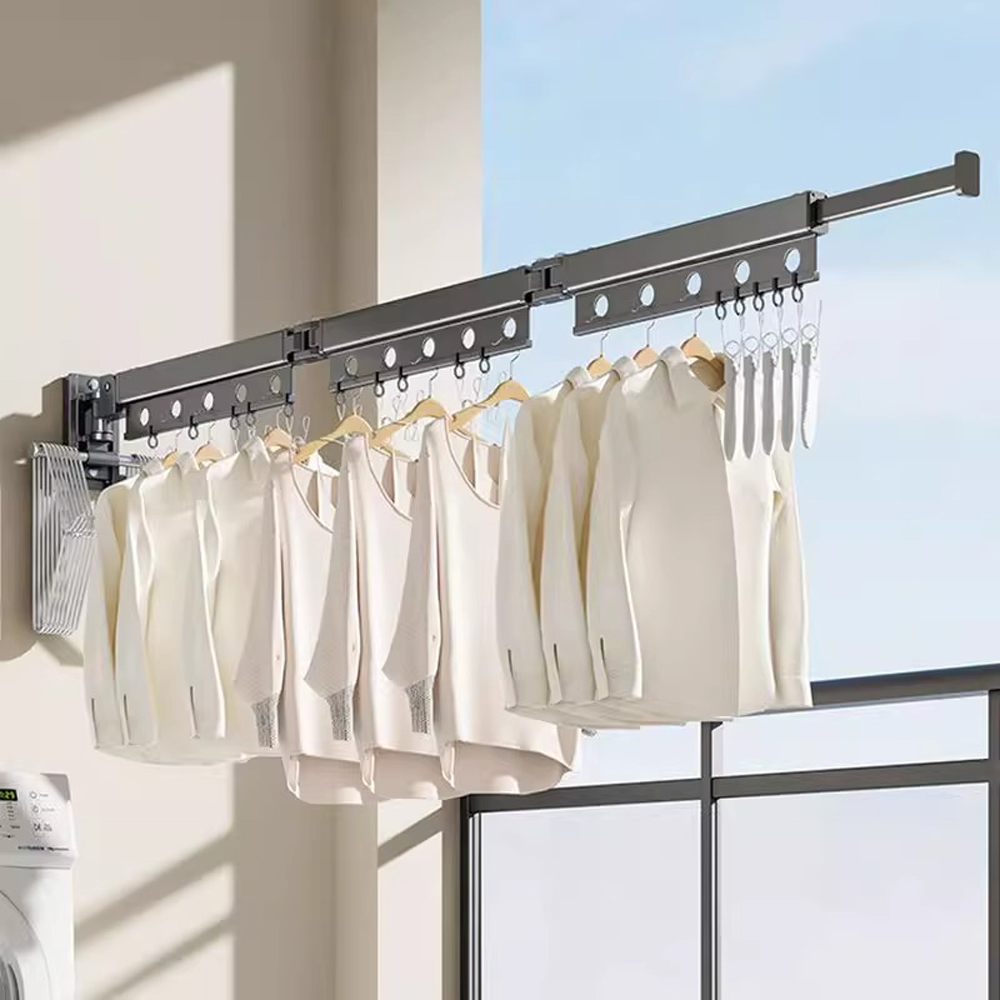 【SV61322】打孔免打孔 多功能折疊伸縮曬衣神器 可上翻旋轉 陽台 壁掛式壁掛式隱形飄窗 曬被子神器 不佔地