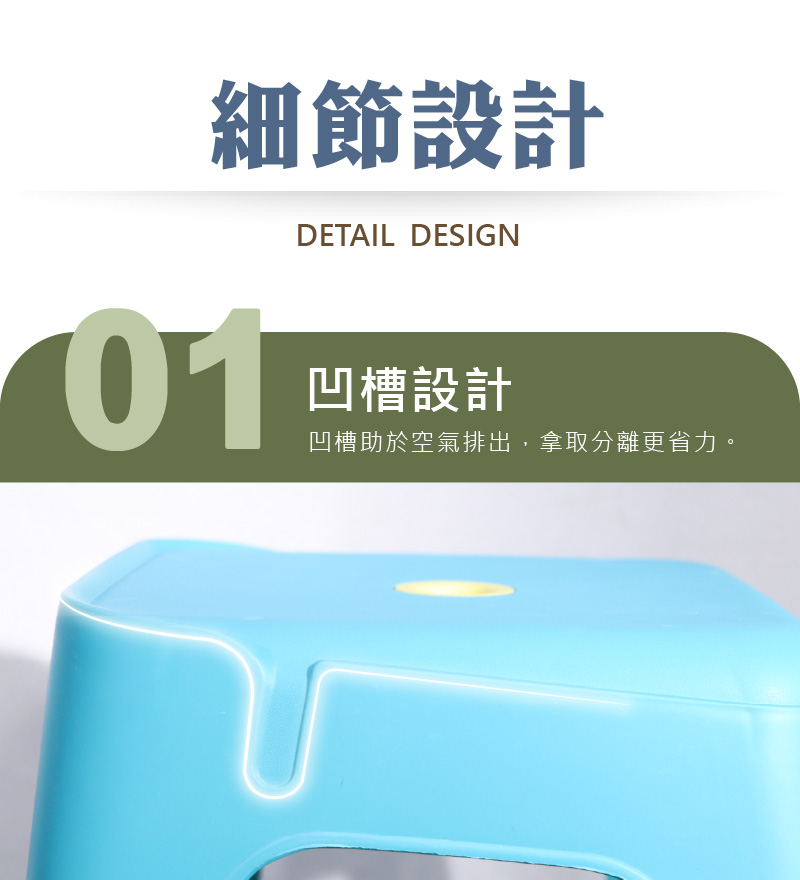 堆疊時凹槽助於空氣排出,拿取分離時更省力。
