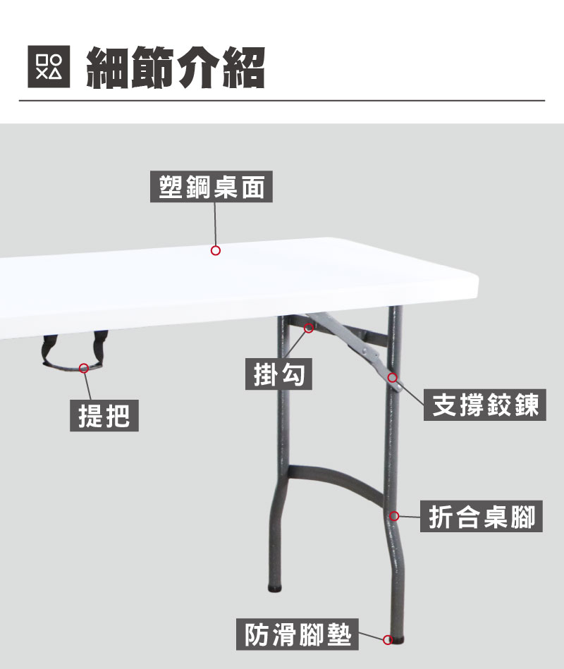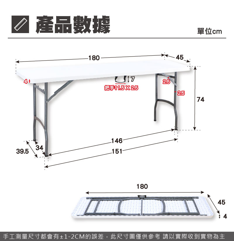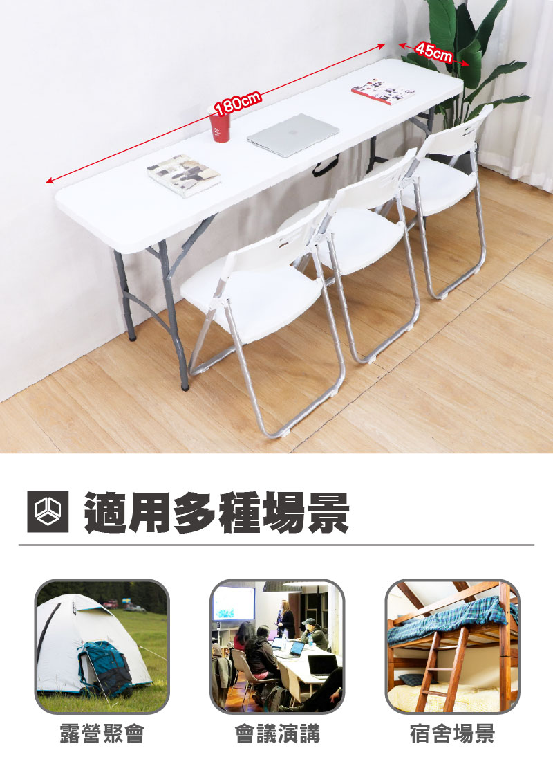 【LOGIS】180*45萬用塑鋼摺疊長桌 野餐桌 展示桌 會議桌【CZ181 】