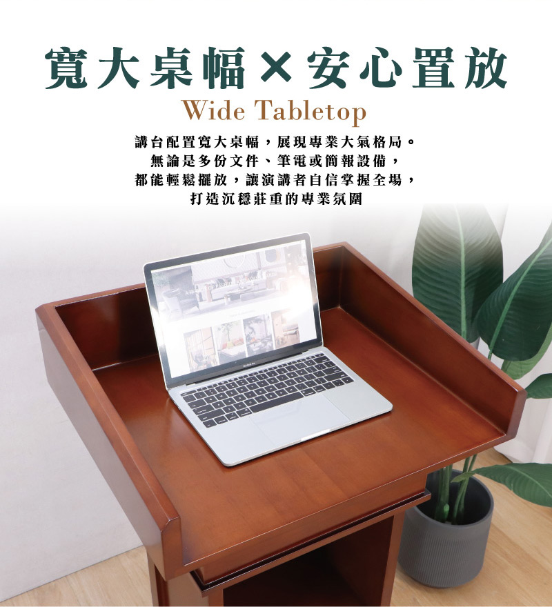 方便隨手收納文件、資料或各式用品。開放取放不受限,讓演講者在簡報或主持過程中,能快速調度物品,展現沉著有序的專業風範。