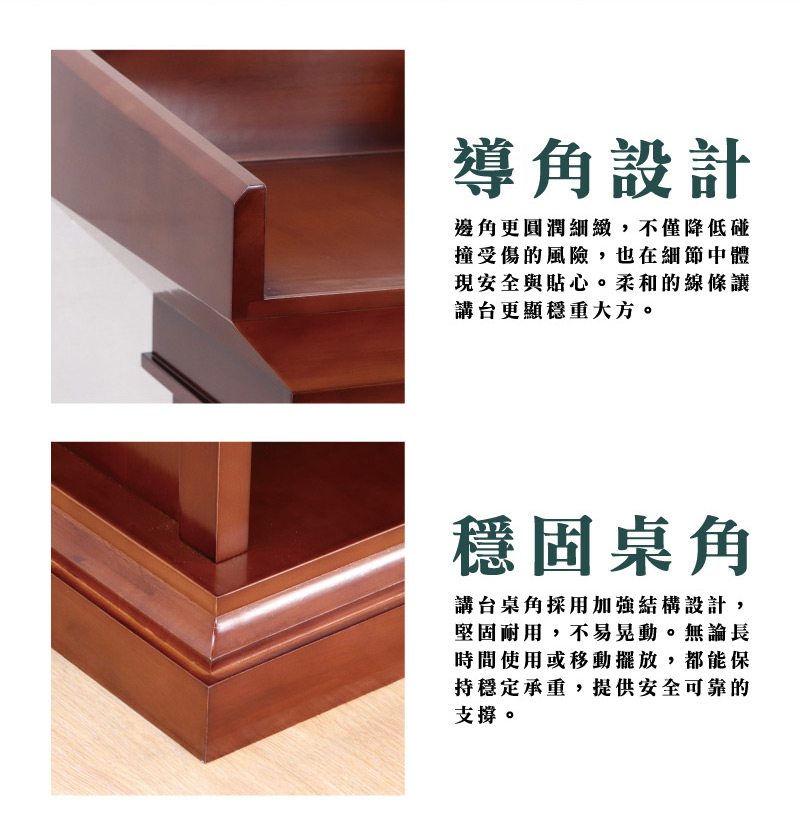 講台桌角採用加強結構設計,堅固耐用,不易晃動。無論長