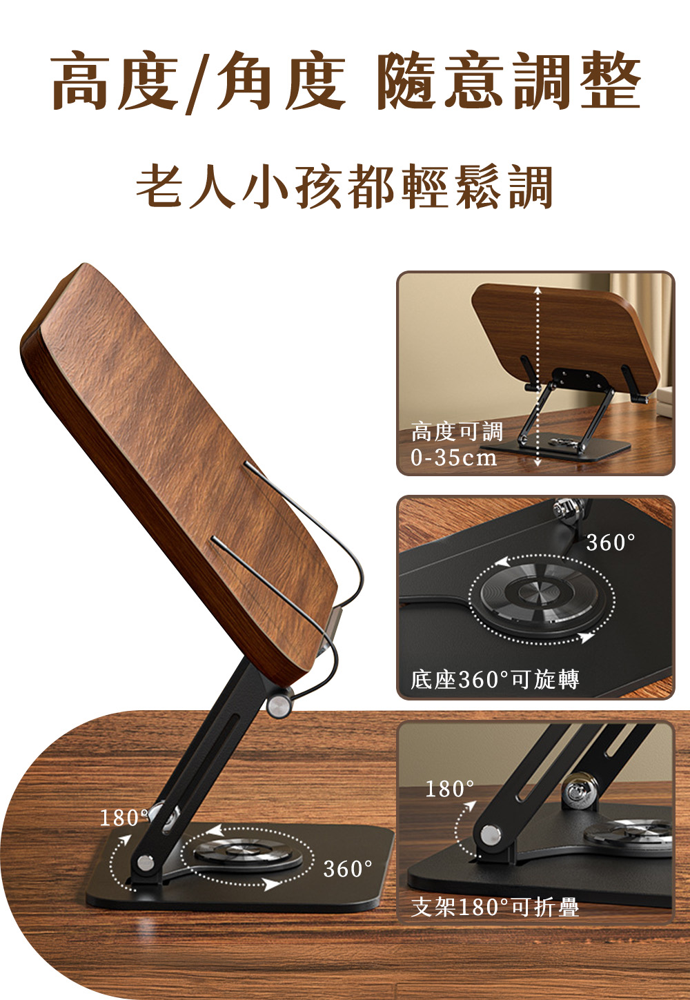這款嚴選「實木旋轉升降閱讀架」,專為現代學習與辦公設計。