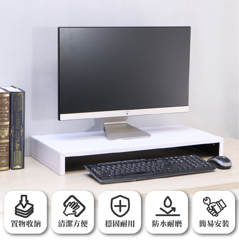 架下可收納鍵盤、滑鼠,架上可放置手機、螢幕等物品,提升桌面整潔感。