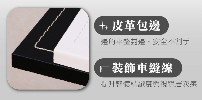 皮革包邊 + 質感車縫線,視覺與觸感兼具。