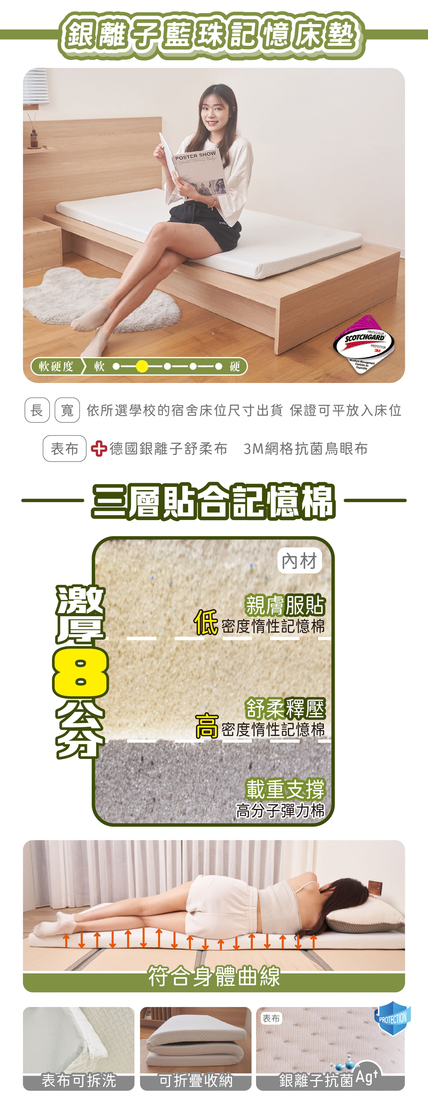 銀離子藍珠記憶床墊(附收納袋)