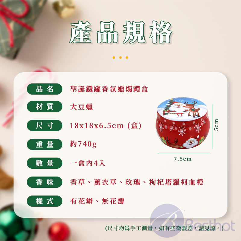 【Besthot】聖誕鐵罐香氛蠟燭禮盒