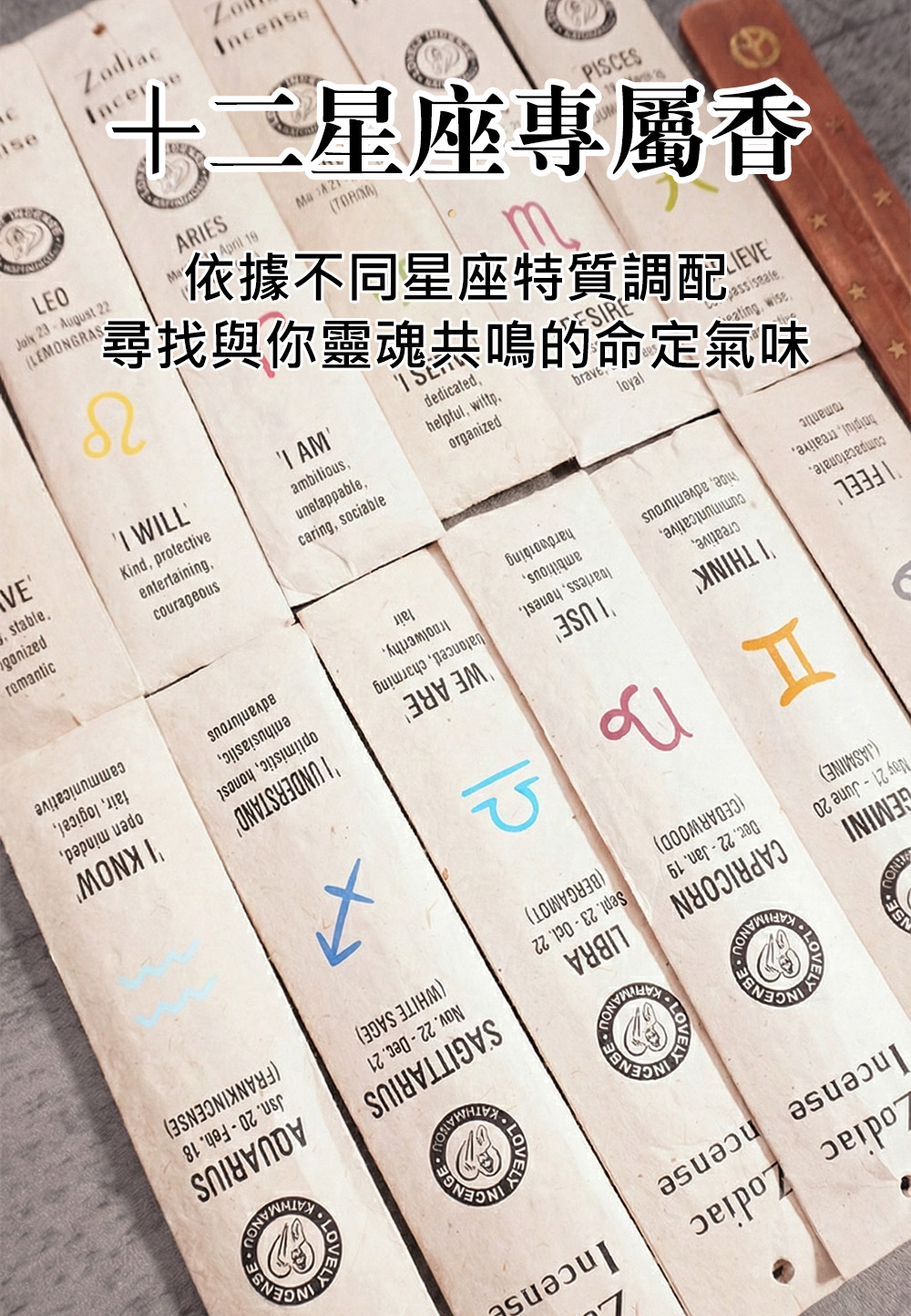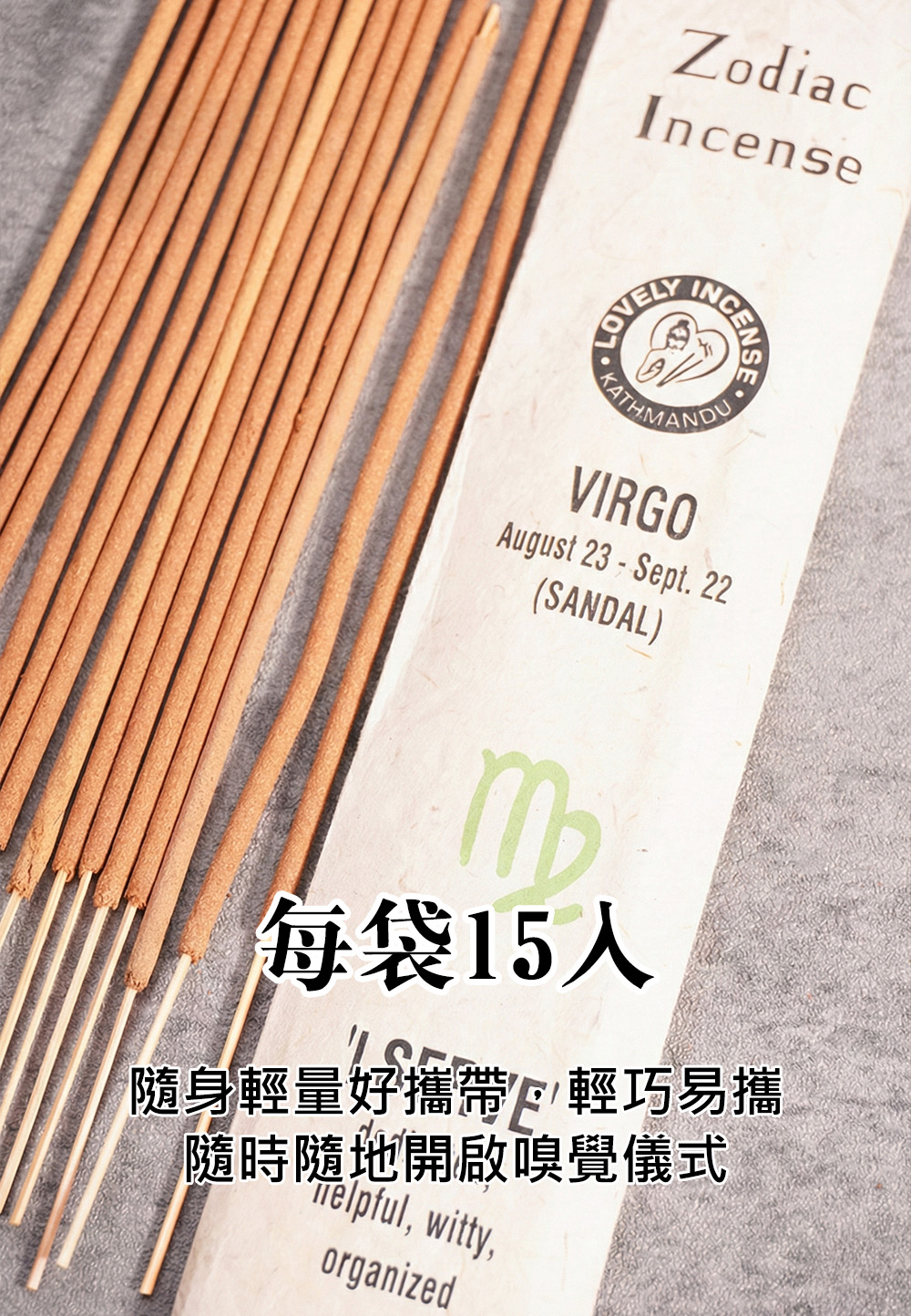 十二星座線香【12種香調】每包15支 尼泊爾lovely 手工竹籤香 線香 玫瑰 檸檬草 檀香 白鼠尾草 雪松木乳香杜松子茶樹 星座