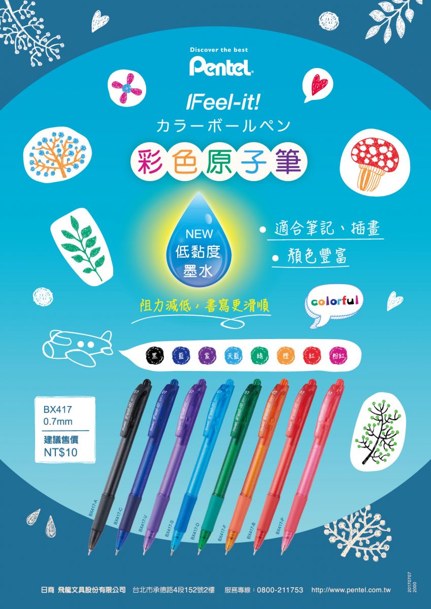 【 Pentel 飛龍 】 IFeel-it! 彩色原子筆 0.7mm / 12支/盒 BX417 - 多款可選