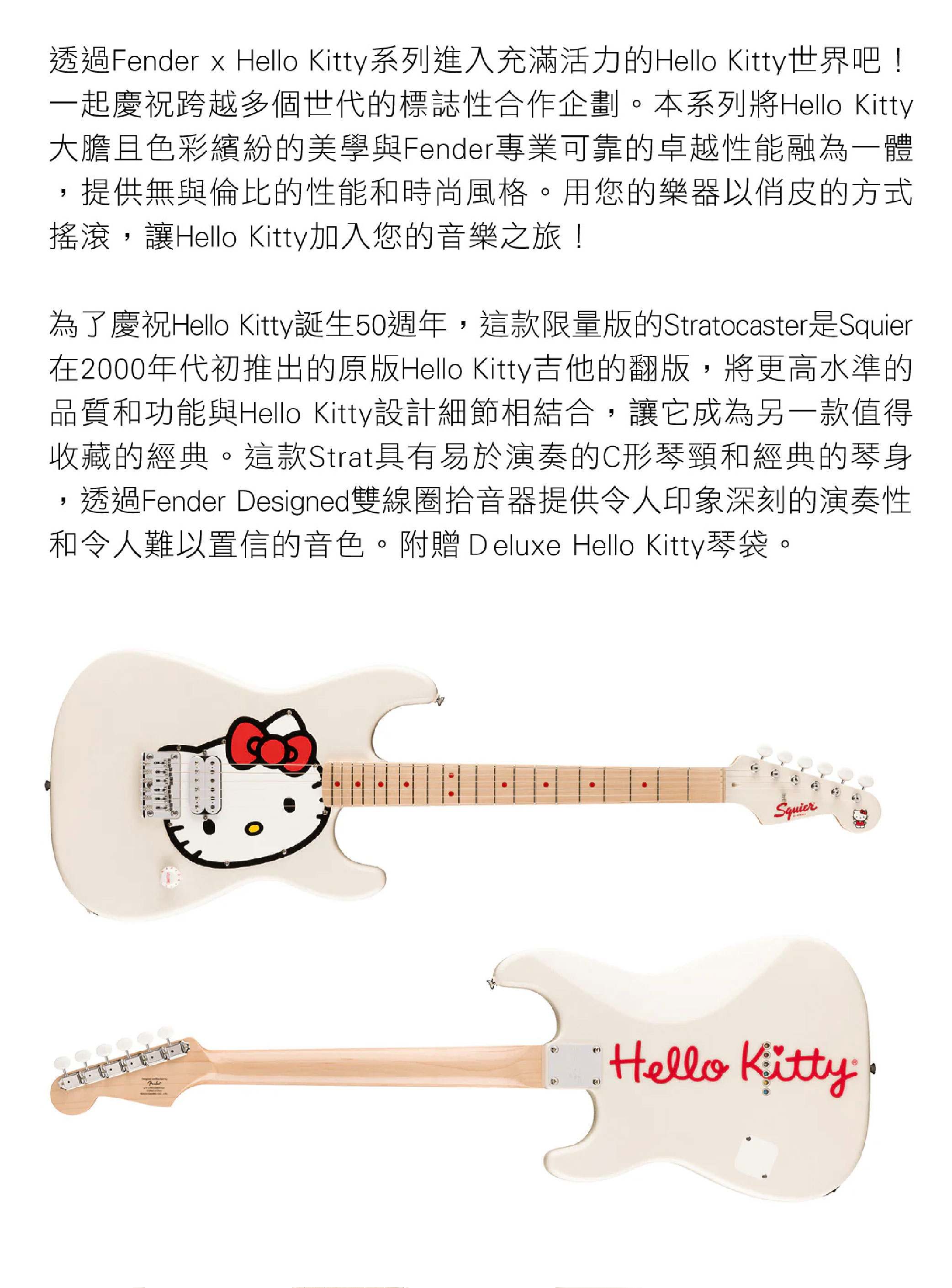 Squier Hello Kitty Stratocaster 50週年紀念款 聯名款電吉他 白色