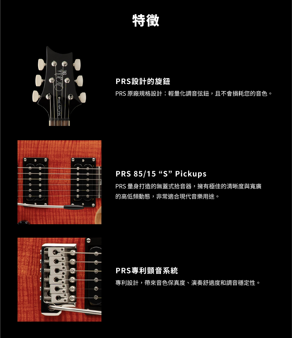 螺栓固定式結構所帶來的額外彈性與反應,自始至終都是吉他歷史中不可或缺的一部分,而 CE 系列的音色與配置,則以 PRS 對經典的獨到詮釋傳承了這項傳統。