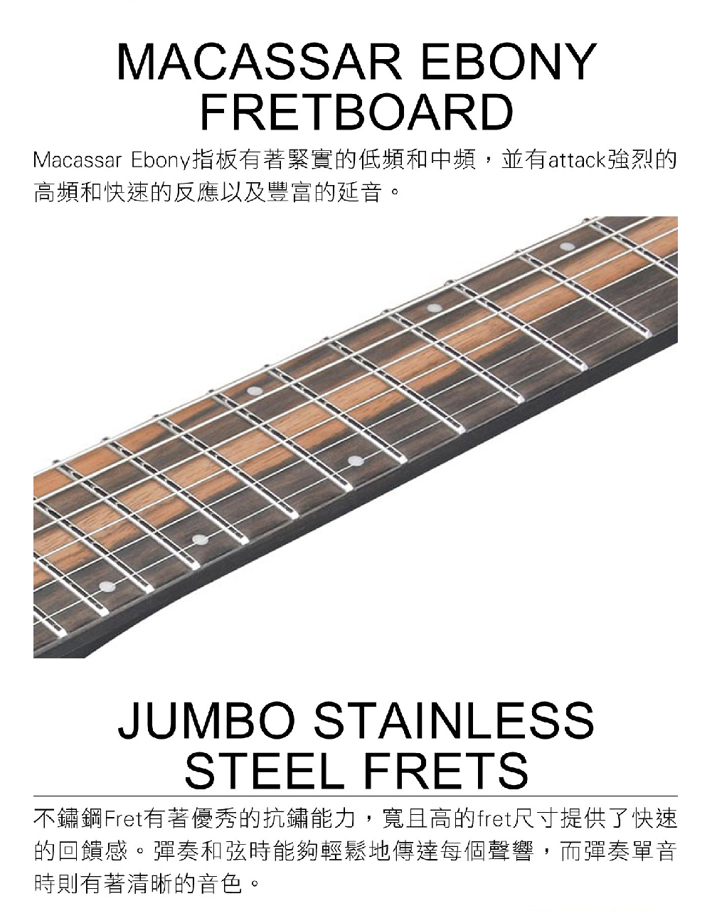 ● 3pc Maple琴頸搭配Macassar Ebony指板