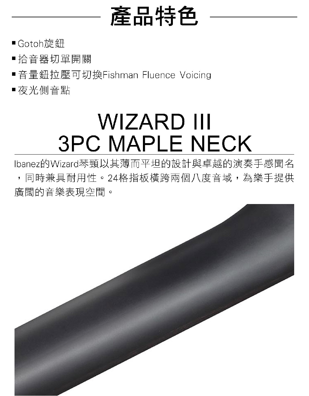 ● 搭載Fishman Fluence Modern琴頸段雙線圈和Fishman Fluence Modern琴橋段雙線圈拾音器
