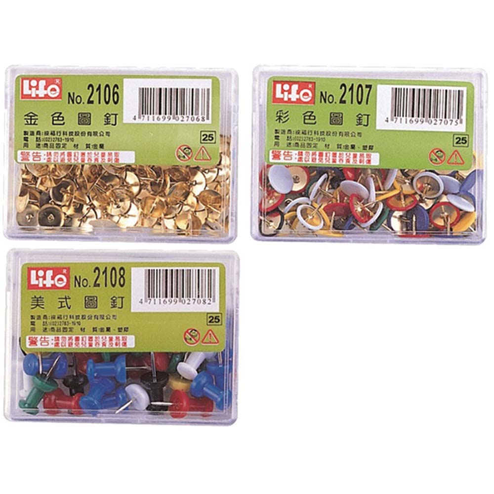 【商品介紹】型號:NO.2106貨號:027068規格:金色圖釘‧約100支入型號:NO.2107貨號:027075規格:彩色圖釘‧約70支入型號:NO.2108貨號:027082規格:美式圖釘‧約30支入