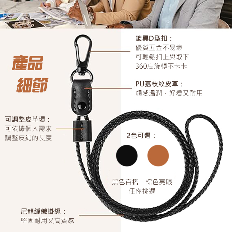 皮革編織掛繩【黑色/棕色】 手機掛繩 證件套掛繩 長度可調 pu皮革 掛繩 吊繩 背貼掛繩 掛脖 頸掛繩 手機殼掛繩
