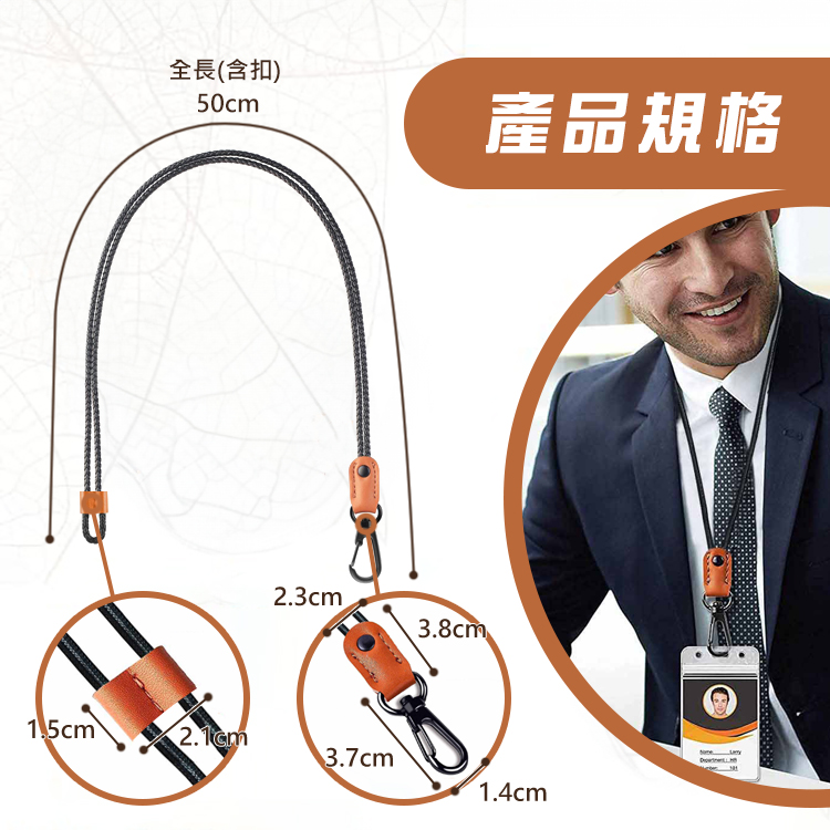多功能編織掛繩,採用優質PU皮革製成,將耐用性與絕美外觀結合。長度為50公分,並設計有可調節功能,確保各種身形與不同用途都能舒適配戴。其精緻的編織掛繩增添了一份優雅感,使其不僅僅是一件簡單的實用物品。無論是配掛手機還是工作證件,這款掛繩都是您的必備選項,非常適合重視風格與功能的你。🖇️ PU皮革材質:採用優質PU皮革,結合耐用性與專業光滑外觀。📏 50公分長度:長度適中,搭配可調節設計,適合各種身形。✂️ 可調節長度:根據個人需要輕鬆調整長短,穿戴更加舒適。🌟 9芯尼龍編織繩:精緻的編織工藝,不僅實用更耐用。📱 手機掛繩:方便攜帶手機,隨時保持連絡的便利性。🎫 證件套掛繩:皮革質感,更顯專業質感。
