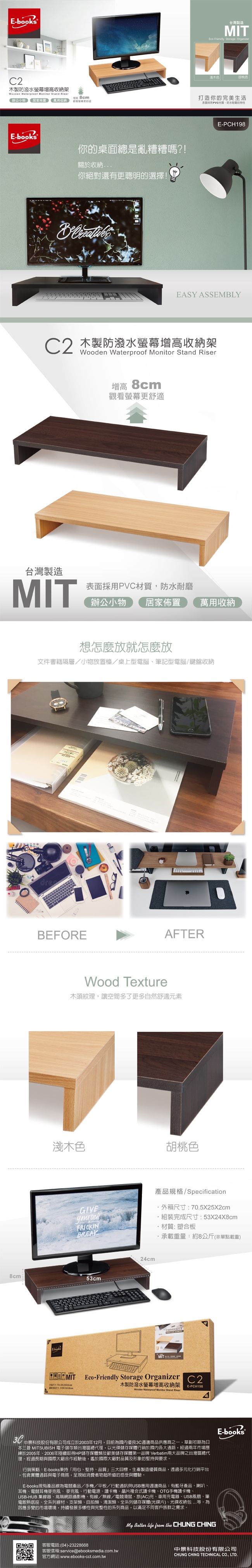 [ E-books ] C2 木製防潑水螢幕增高收納架-胡桃色