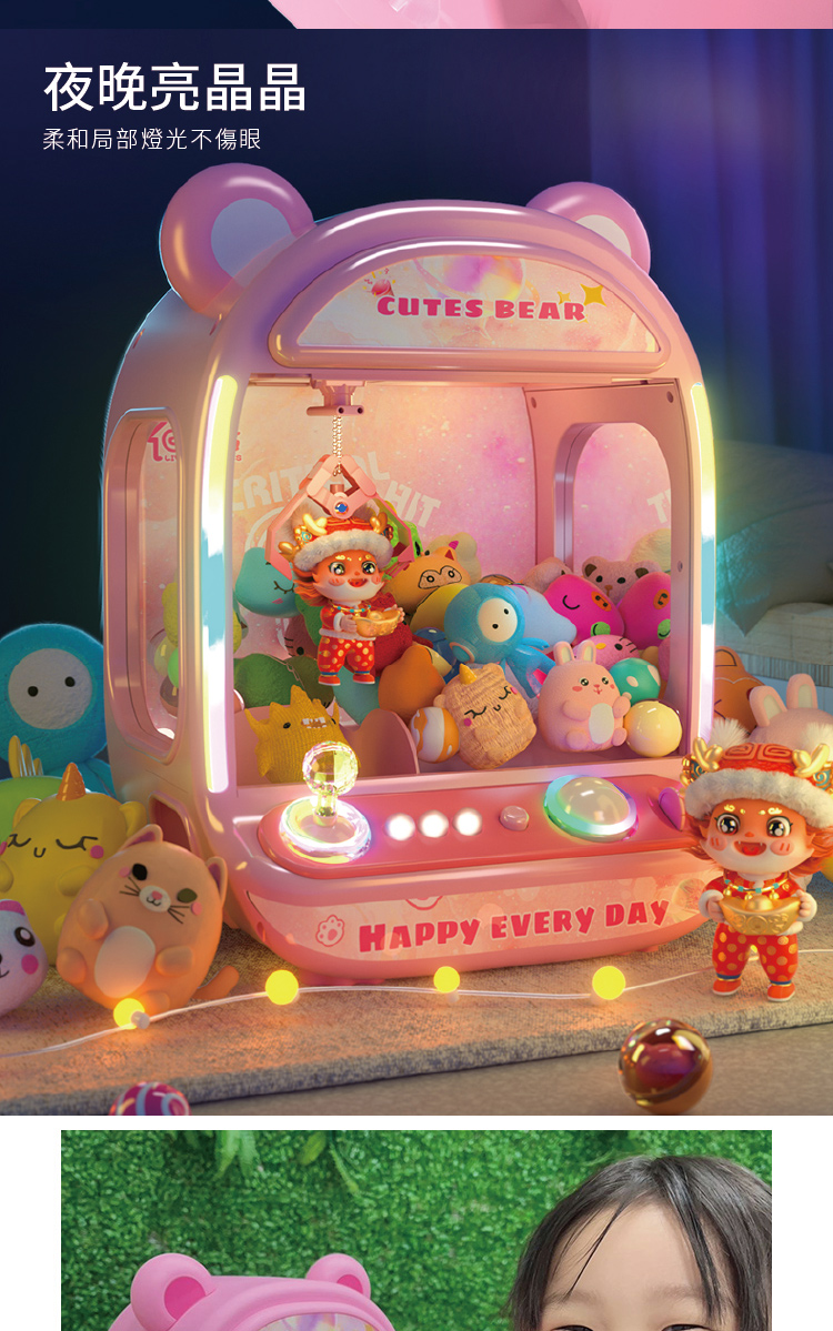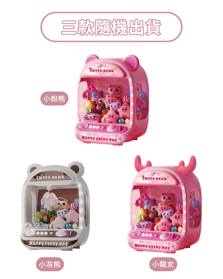 粉Q熊夾娃娃機 USB充電版 顏色款式隨機