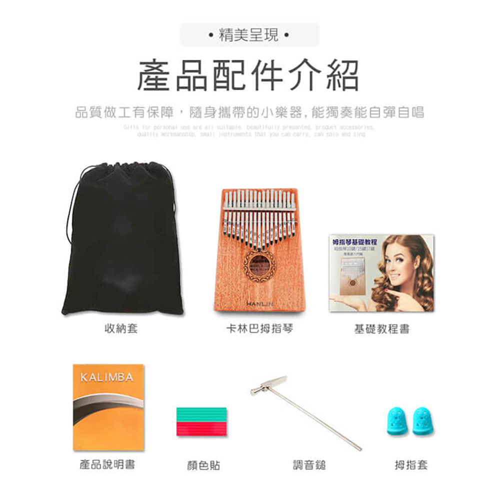 附贈全套配件(調音鎚/收納套/說明書教學/顏色貼/拇指套)