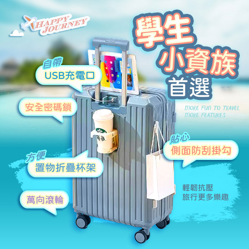 【HJY】鴻嘉源 多功能USB充電行李箱K20-藍